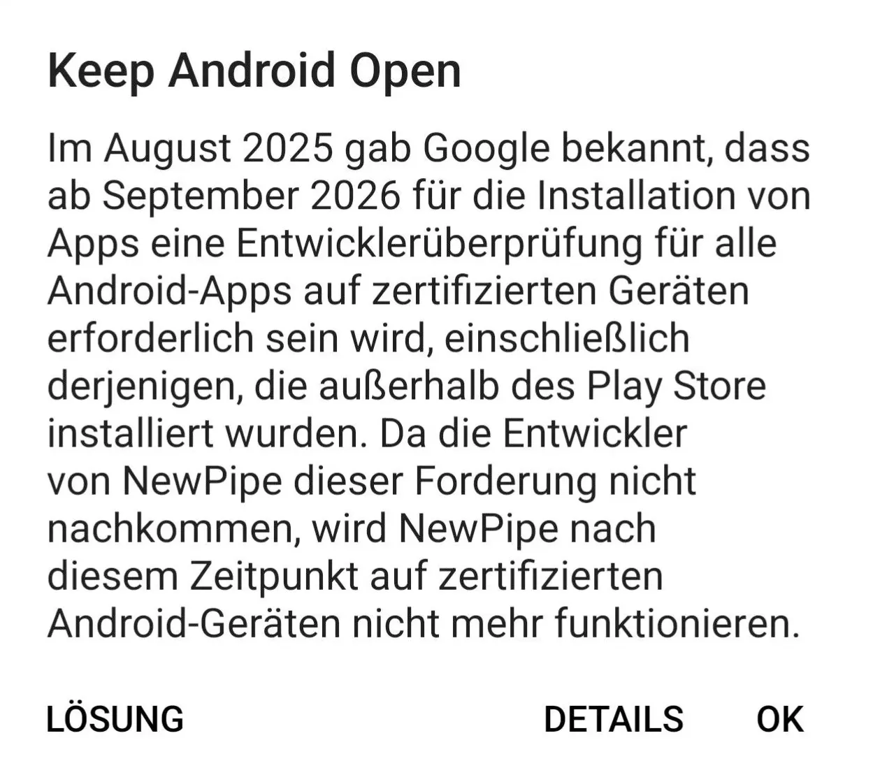 Was bedeutet die Nachricht „Keep Android Open“ genau, und bin ich davon betroffen, wenn ich ein Freiheitshandy verwende?